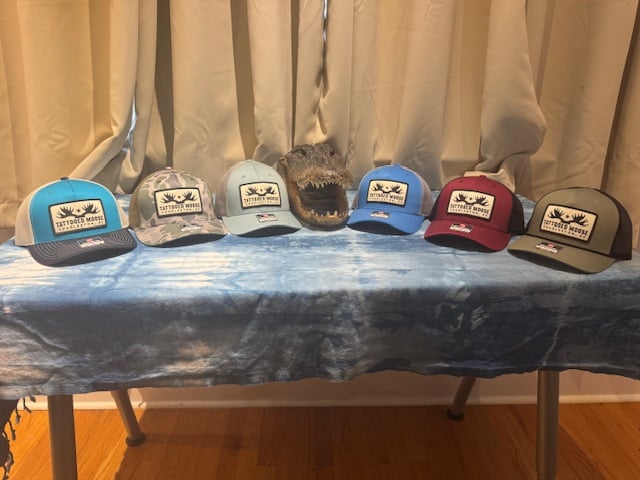 Low profile trucker hat, with hand stitched Tattooed Moose patch. Picture showing all the color hats available, there's no way there isn't a color you just have to have!